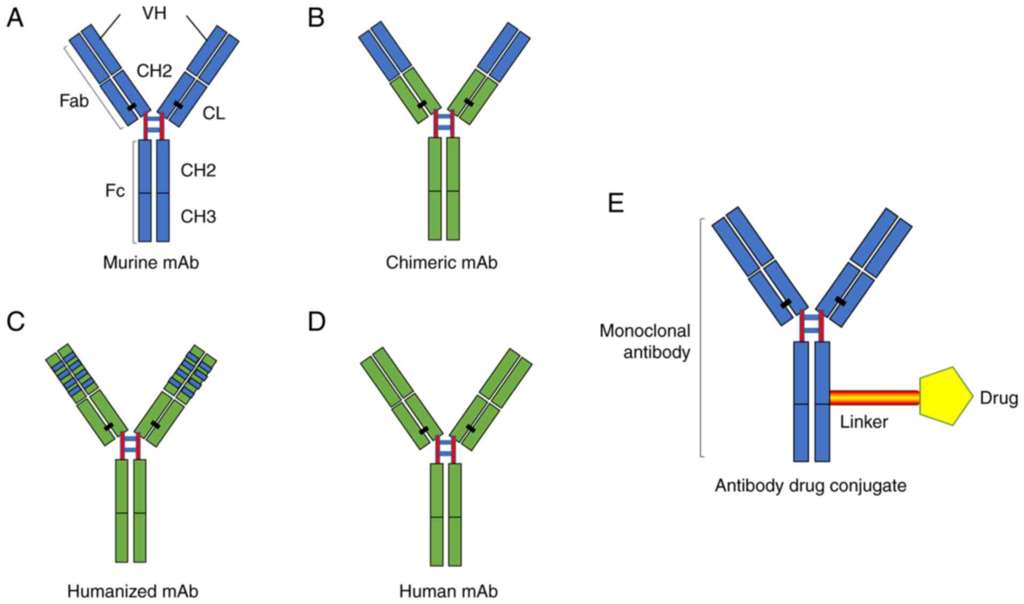 单克隆抗体:这类药物是人工合成的特异性免疫系统蛋白,可以识别并结合到癌细胞表面的特定抗原上。例如,曲妥珠单抗(Trastuzumab)是一种针对HER-2阳性乳腺癌的单克隆抗体,它可以阻断HER-2信号通路,抑制癌细胞的生长和扩散。